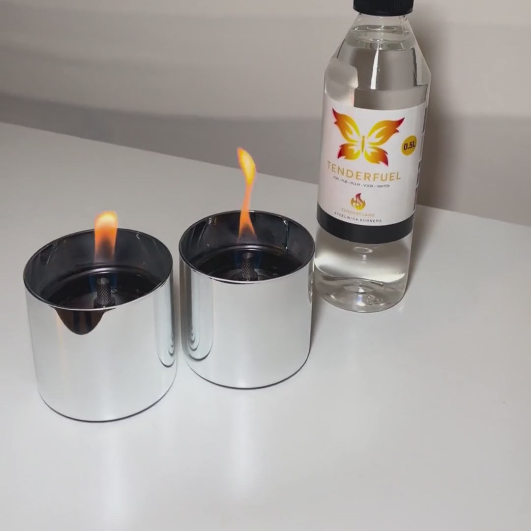 Um dies zu erreichen, haben wir den patentierten Edelstahldocht und unser Tenderfuel erfunden, die im Gegensatz zu Bioethanol zu 100 % sicher in der Anwendung sind.