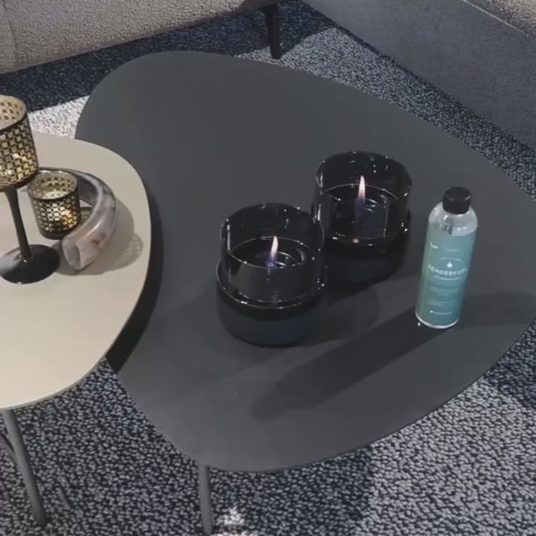 Unsere Kamine und Kerzen brennen mit Tenderfuel, einem patentierten, umweltfreundlichen Brennstoff. Es verbrennt sauber, ohne Schadstoffe oder Rußbildung und ist bei normalem Gebrauch völlig unbedenklich.
