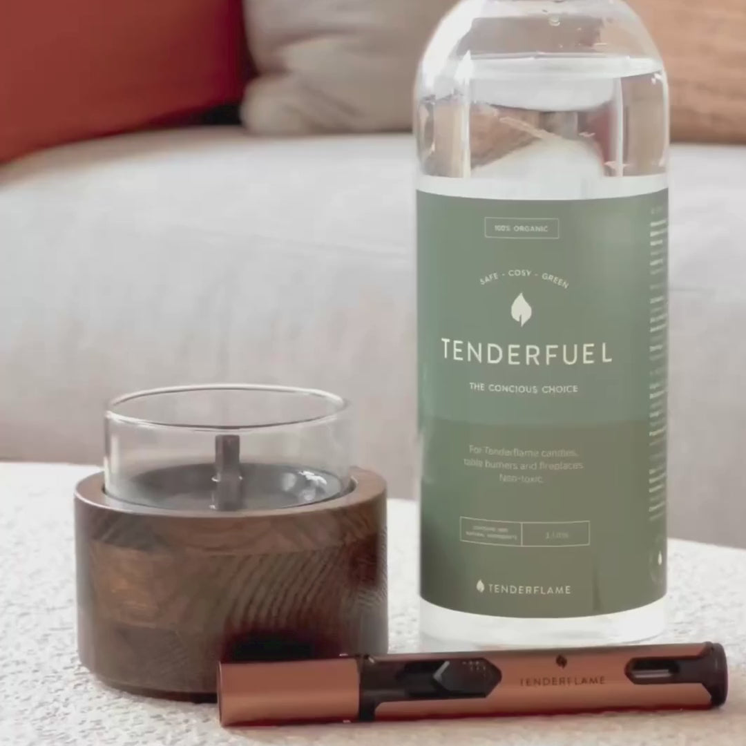 Tenderflame brandt op Tenderfuel, een speciaal ontwikkelde, veilige brandstof. Tenderfuel ontbrandt alleen in combinatie met de gepatenteerde roestvrijstalen lont. Hierdoor is Tenderfuel niet explosief, brandt het schoon en is het aanzienlijk veiliger dan traditionele bio-ethanol of spiritus.